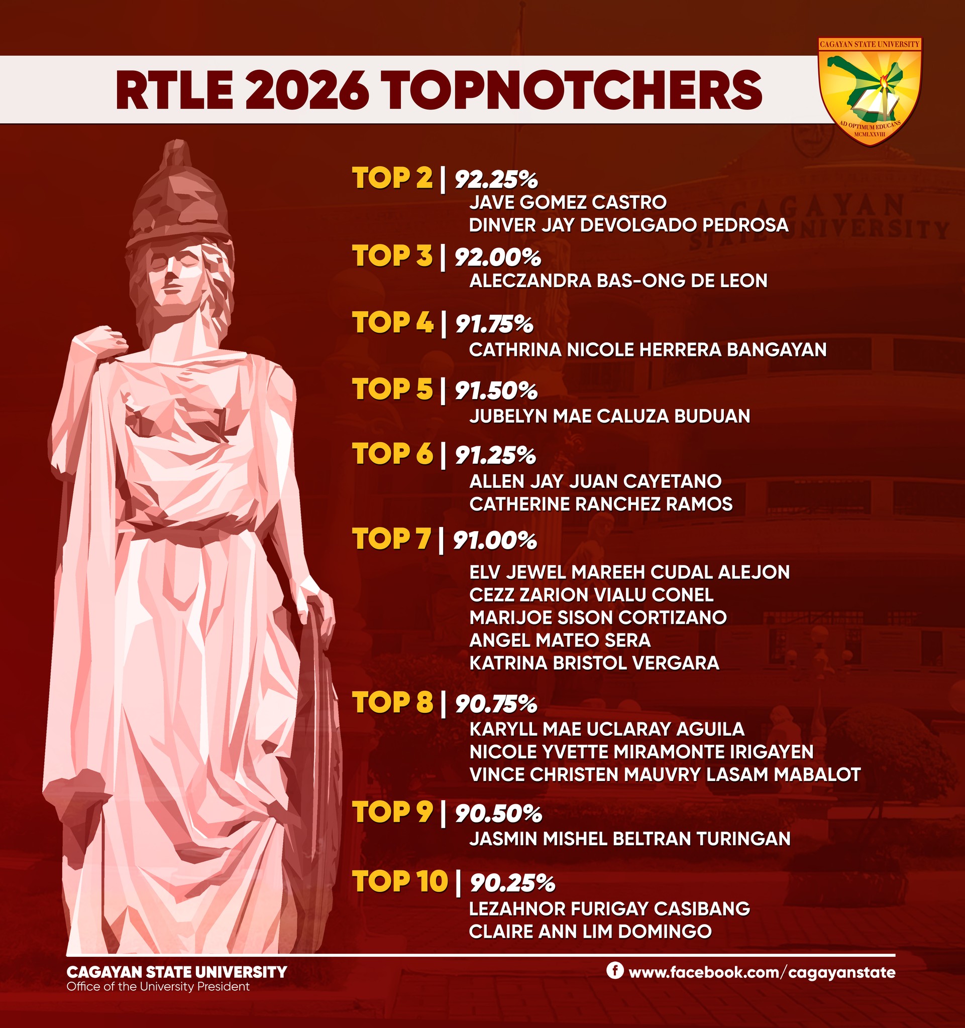•Top 10 (90.25%) – Lezahnor Furigay Casibang, Claire Ann Lim Domingo