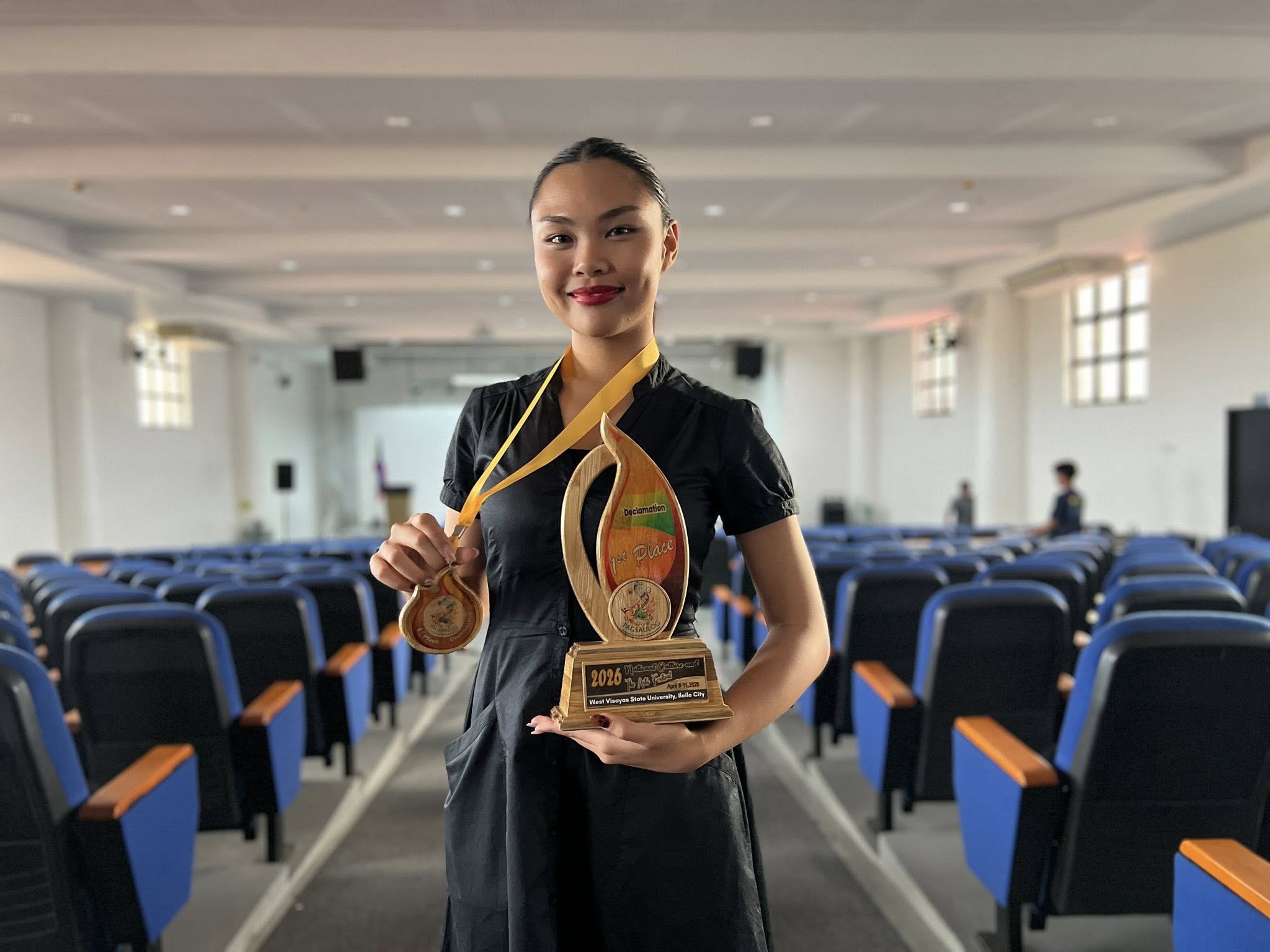 CSU student-performer Ms. Shevonne Alejandro emerges as Champion in the Declamation Contest with her powerful piece “Flesh & Blood,” held at the West Visayas State University College of Medicine Auditorium.