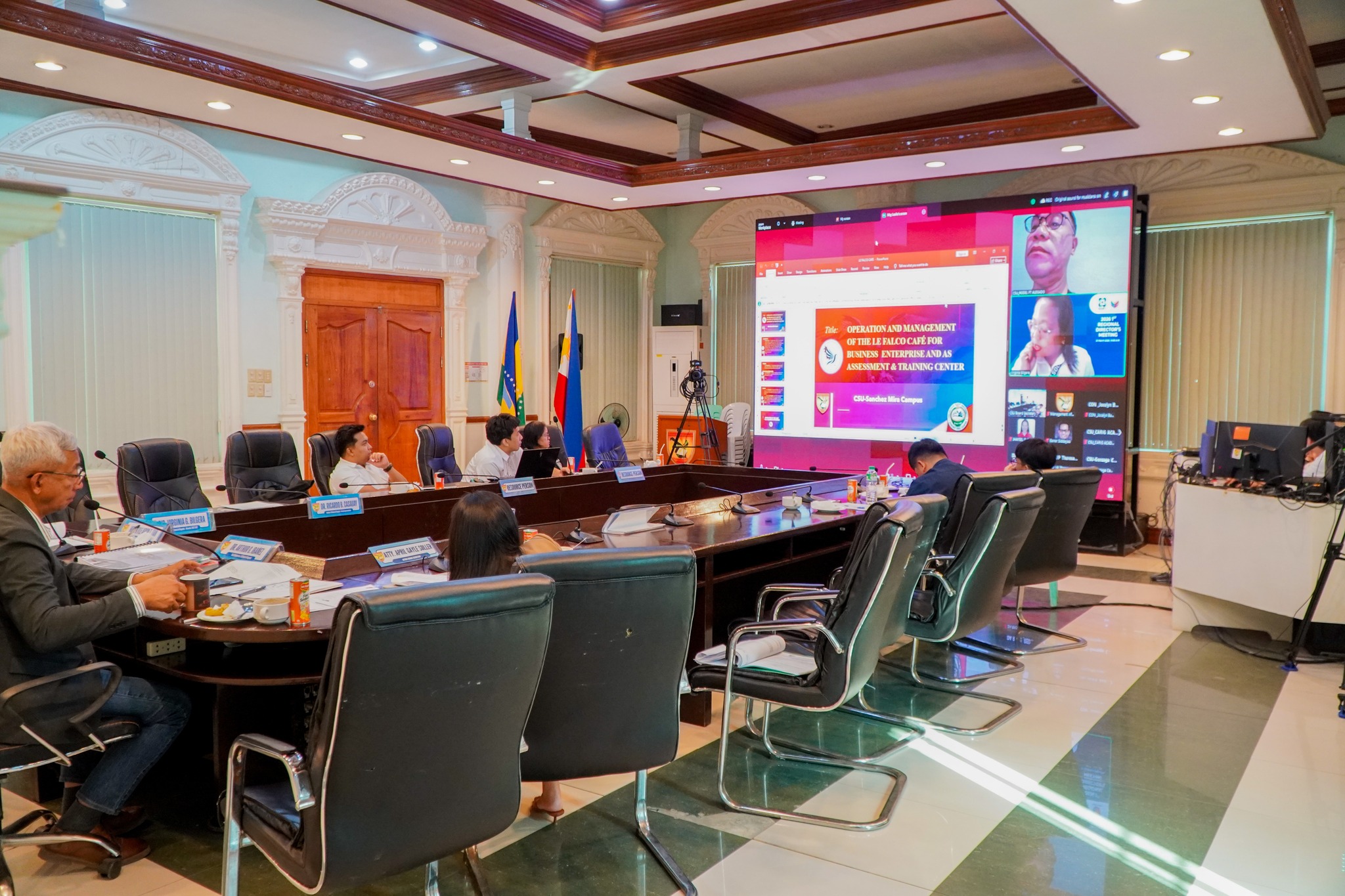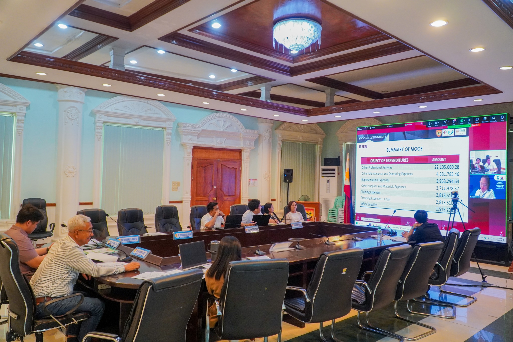 The meeting gathered key members of the Board, including DA Regional Executive Director Rose Mary G. Aquino, DOST R02 Regional Director Virginia Bilgera and Faculty Regent Ricardo Casauay via Zoom, and Student Regent Kyle Aron Tan, alongside other university and campus officials.