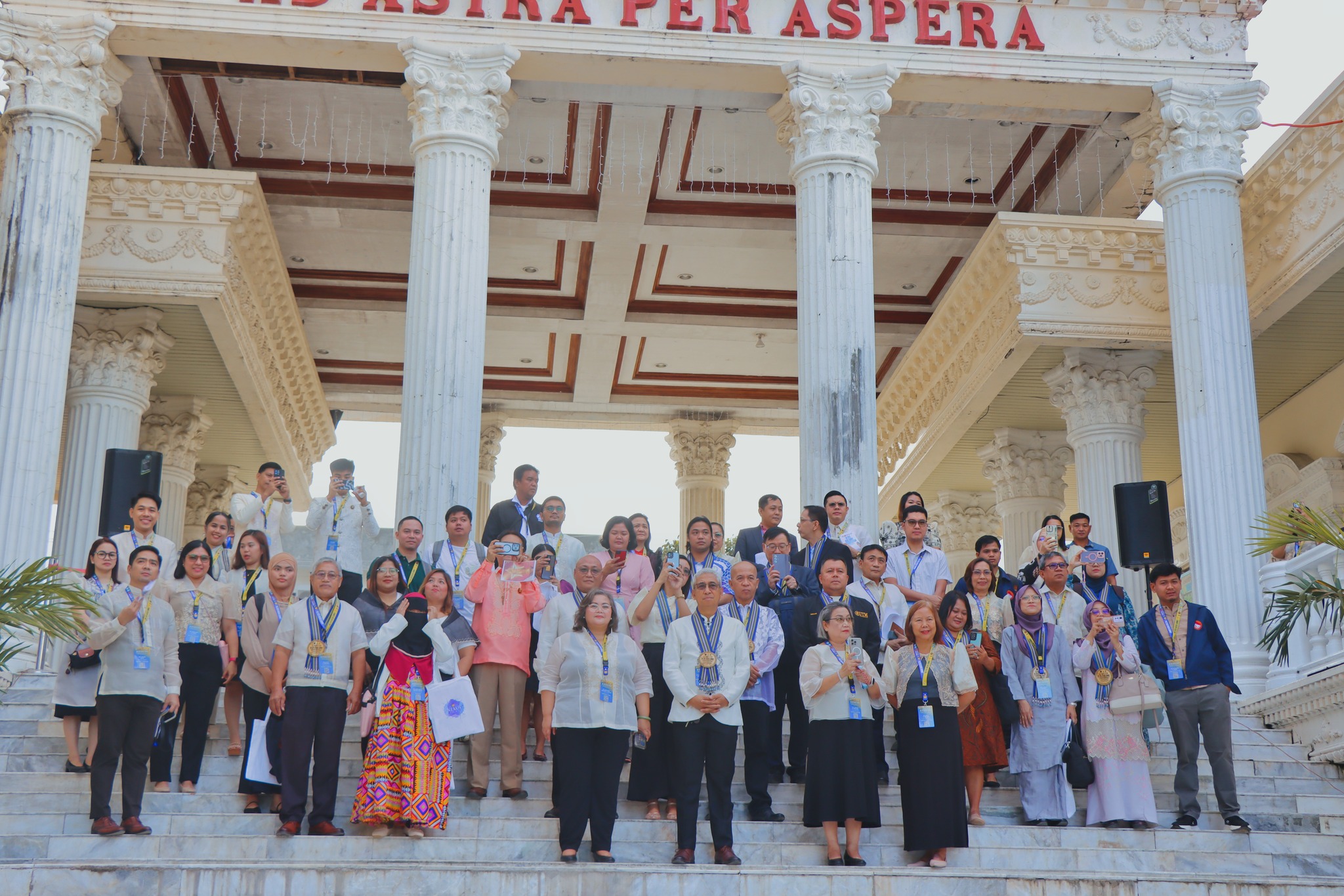 A colorful sea of CSUans, showcasing vibrant Philippine cultural dances, warmly welcomed international and local delegates of the NEXUS 2025 at Cagayan State University—Andrews Campus.