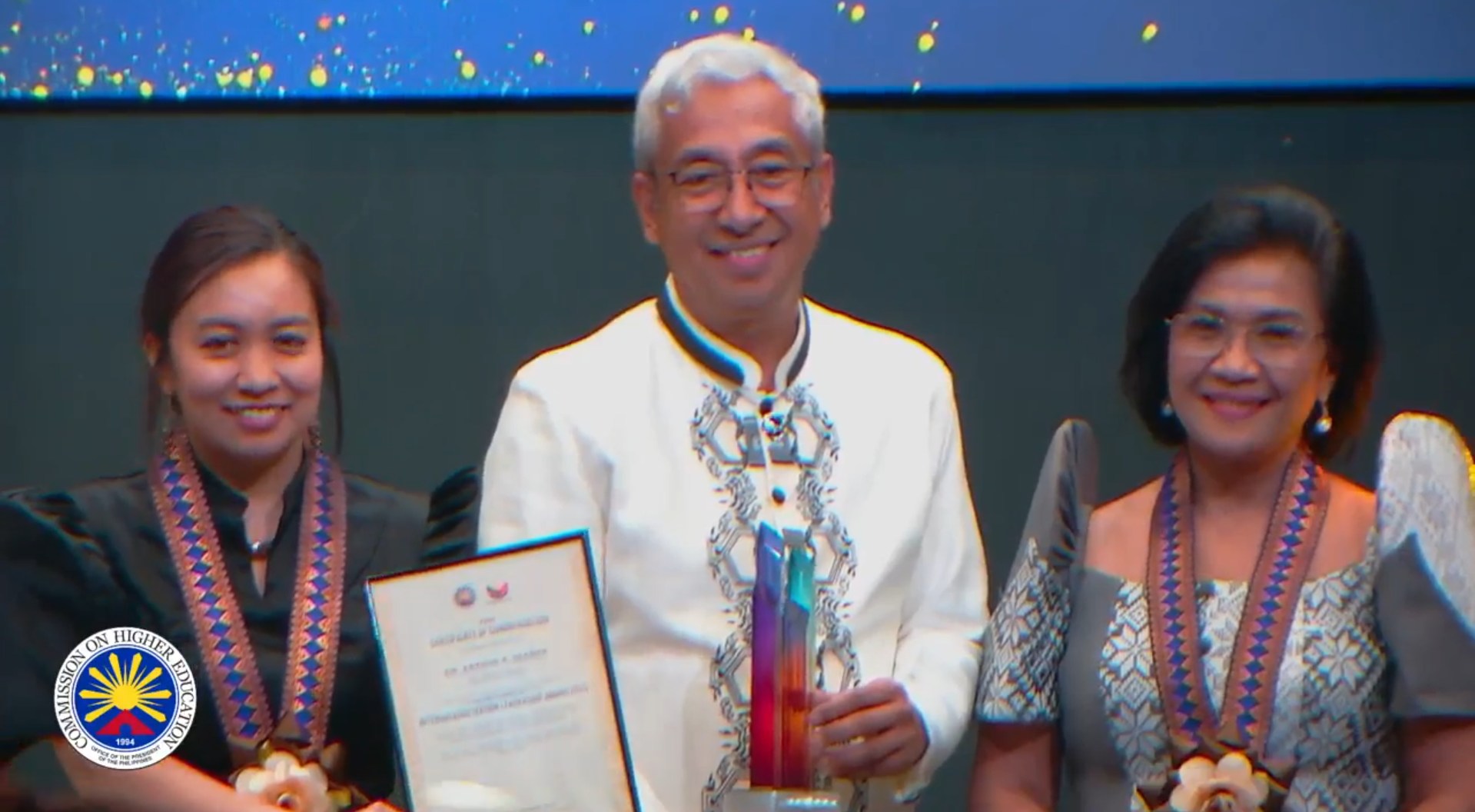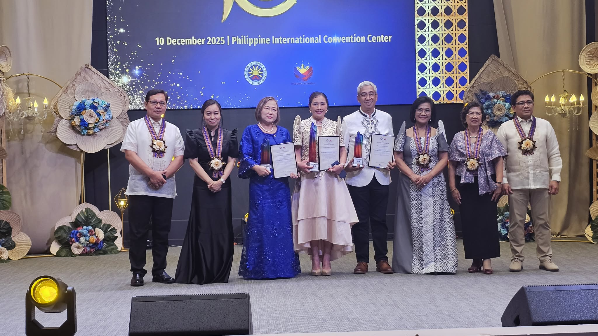 Assisting the chair in presenting the award were Commissioners Ricmar Aquino, Myrna Mallari and Michelle Ong. The ICONS Awards annually honor public and private HEIs that demonstrate outstanding contributions to the internationalization of Philippine higher education, fostering global competitiveness and nation-building.