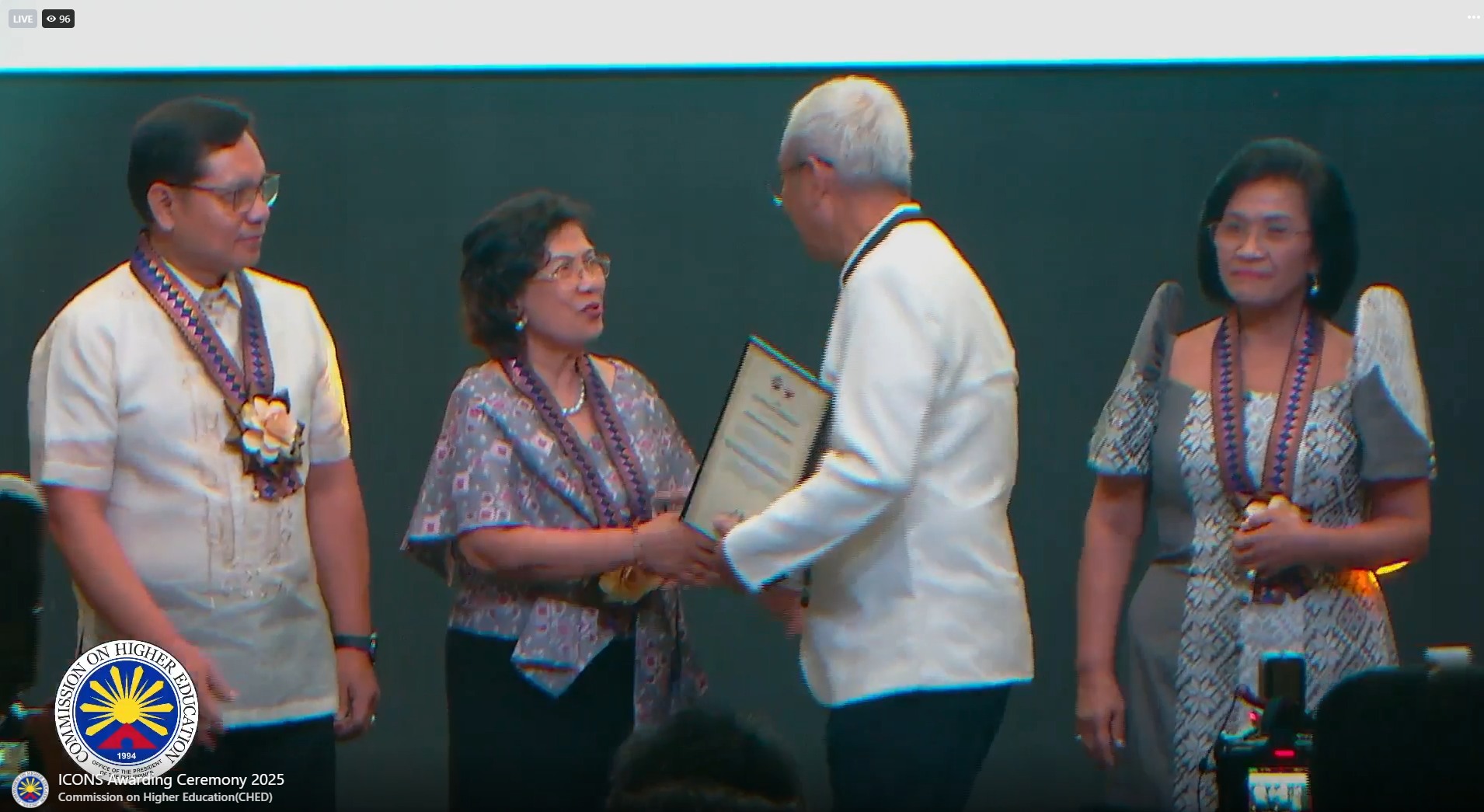 CHED Chair Shirley Agrupis, herself a former ICONS awardee during her tenure as university president of Mariano Marcos State University (MMSU), personally presented a certificate of commendation to Dr. Ibañez.