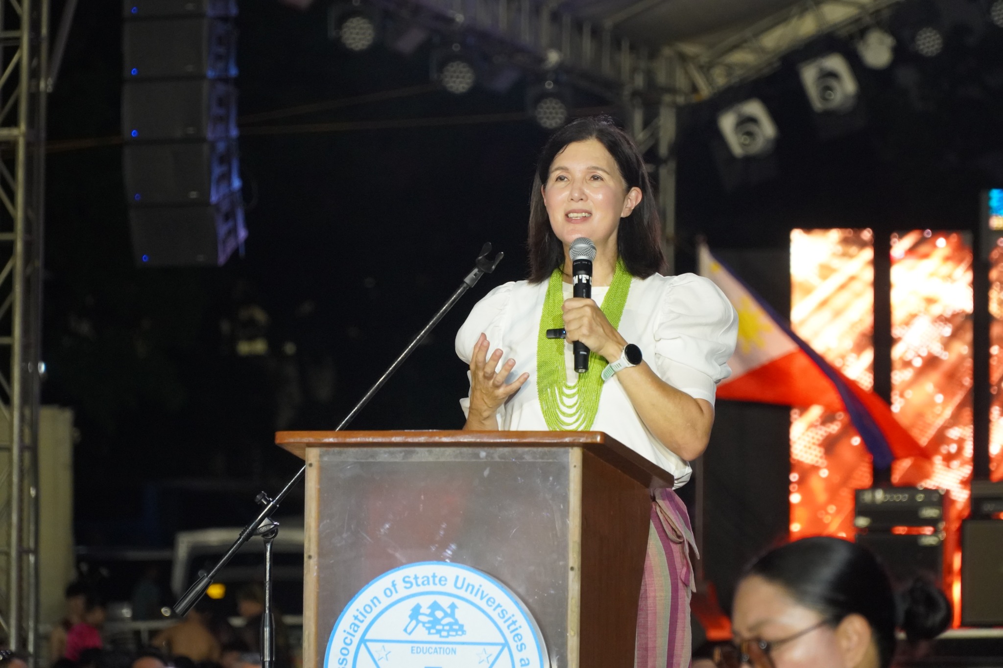 Hon. Senator Pia S. Cayetano delivered a keynote speech, highlighting the significance of preserving culture for future generations and commending the regions for their cultural performances. The event concluded with the presentation of candidates from competing regions and the introduction of Mr. and Ms. PASUC 2024, followed by the official opening of the BUDSILIW: 2024 PASUC Culture and the Arts Festival by Dr. Tirso A. Ronquillo, President of PASUC. A spectacular fireworks display and unity dance marked the end of the opening program.