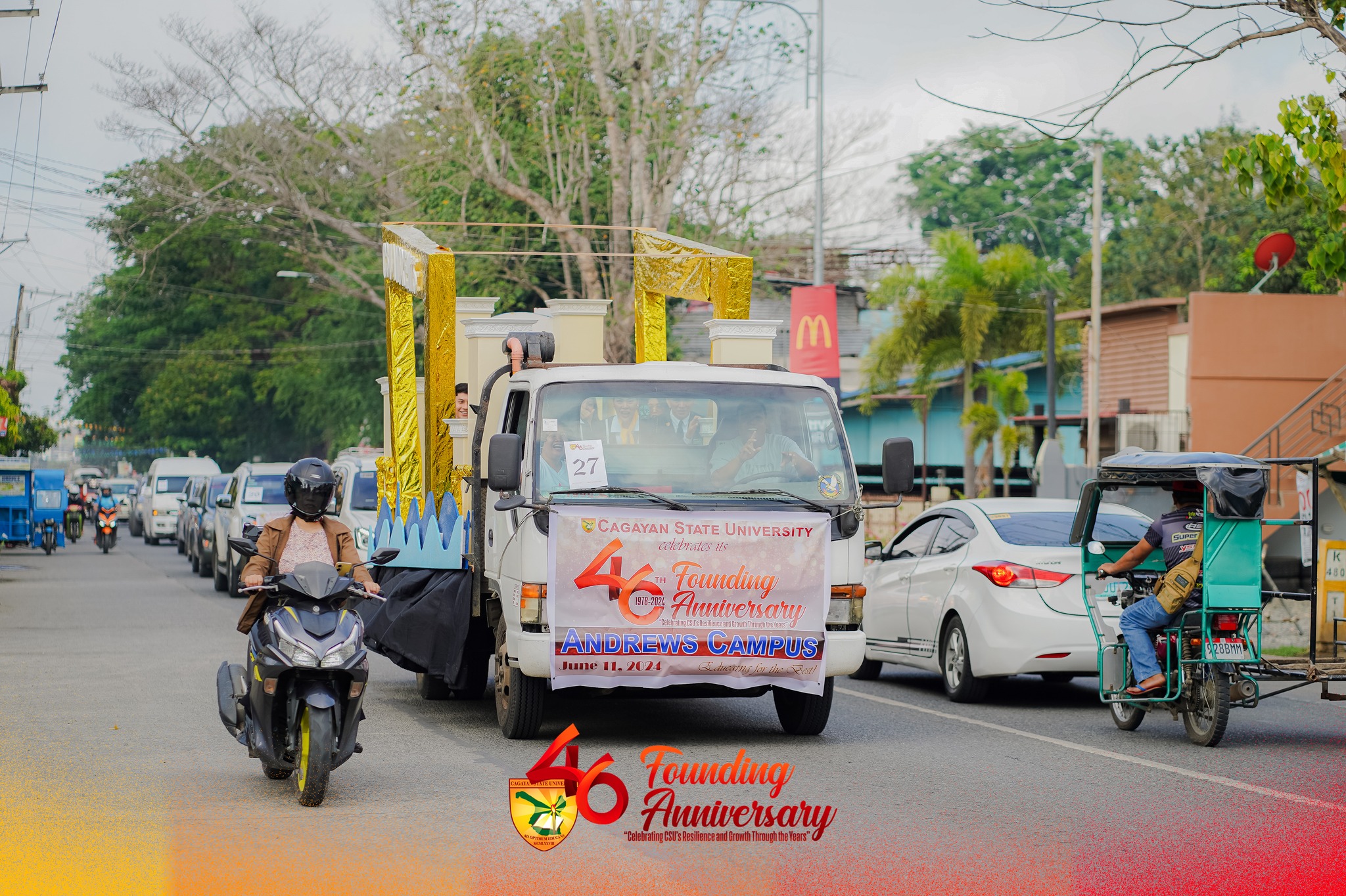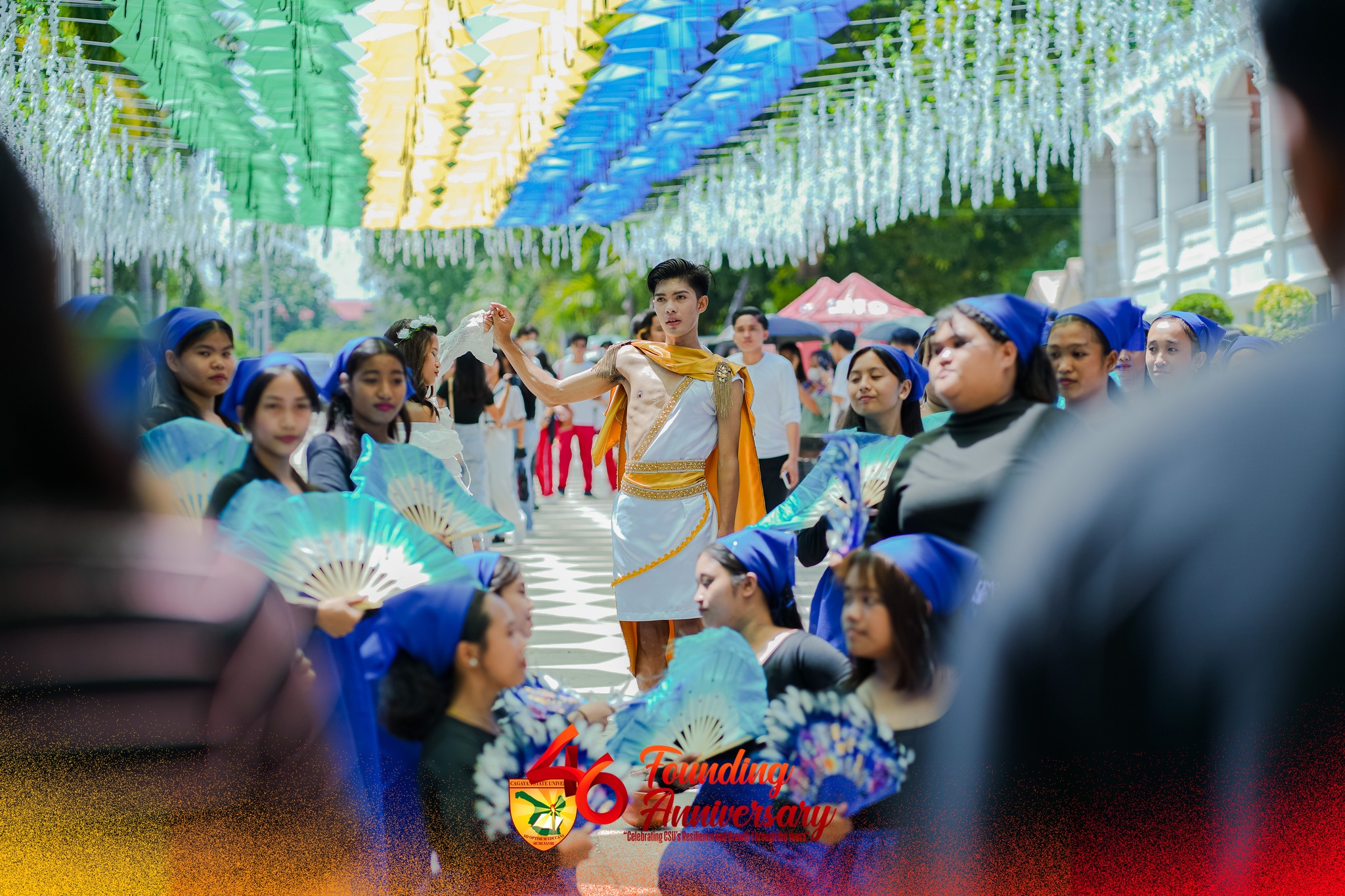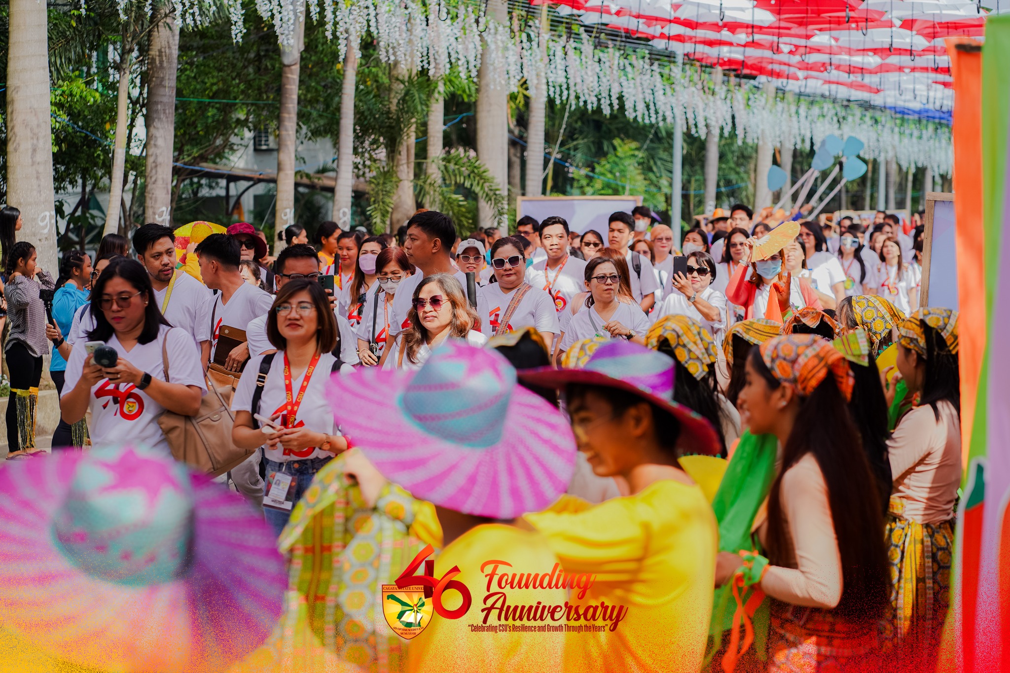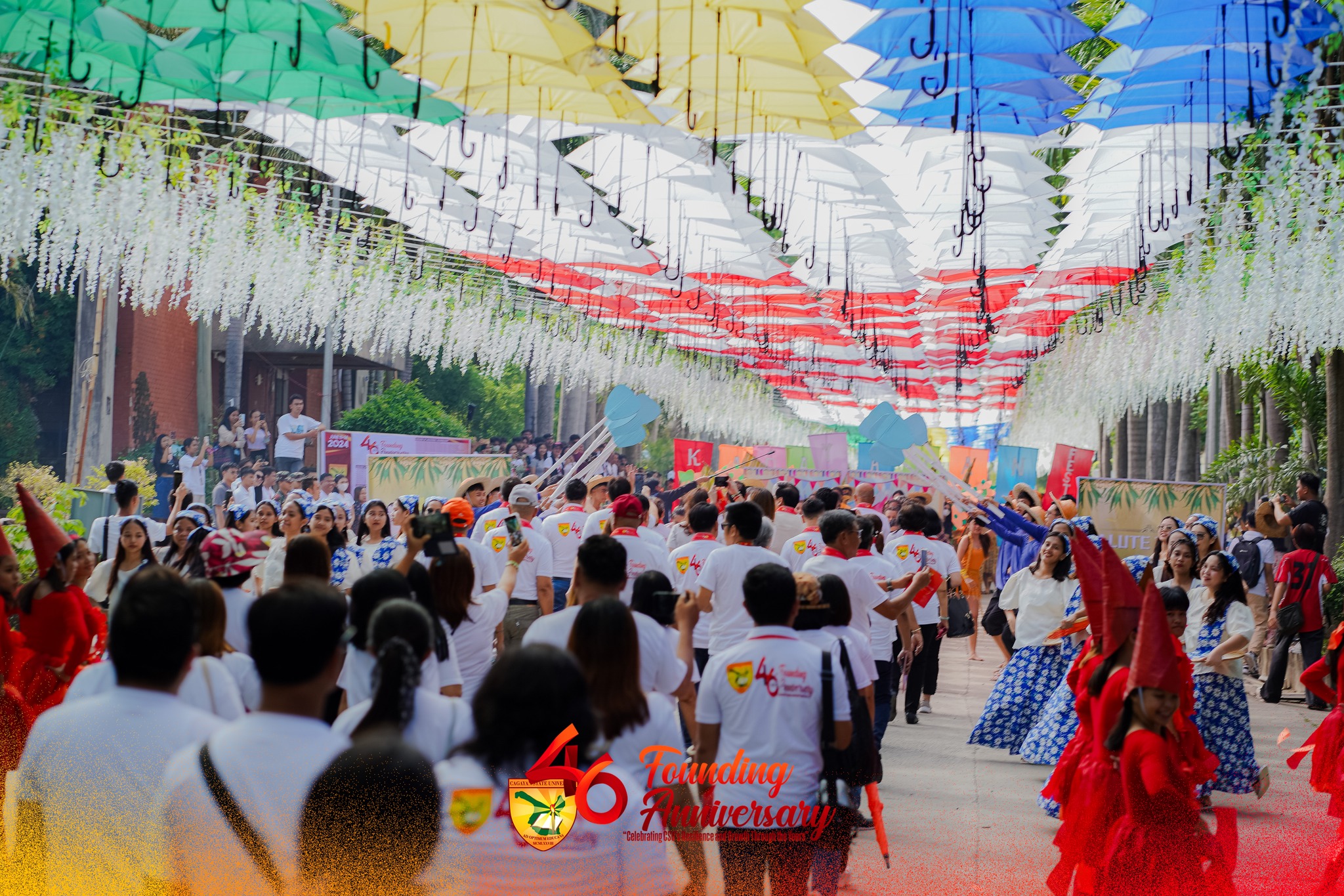 Cagayan State University commemorates another significant milestone as it celebrated its 46th Founding Anniversary, which commenced yesterday, June 11, 2024, and is slated to continue until June 14. The festivities began with a spectaculer traditional grand welcome dance by hundreds of students at CSU Carig’s Palm Avenue. The street was adorned with a stunning array of hanging umbrella canopies in a myriad of colors that created a vibrant and festive atmosphere.