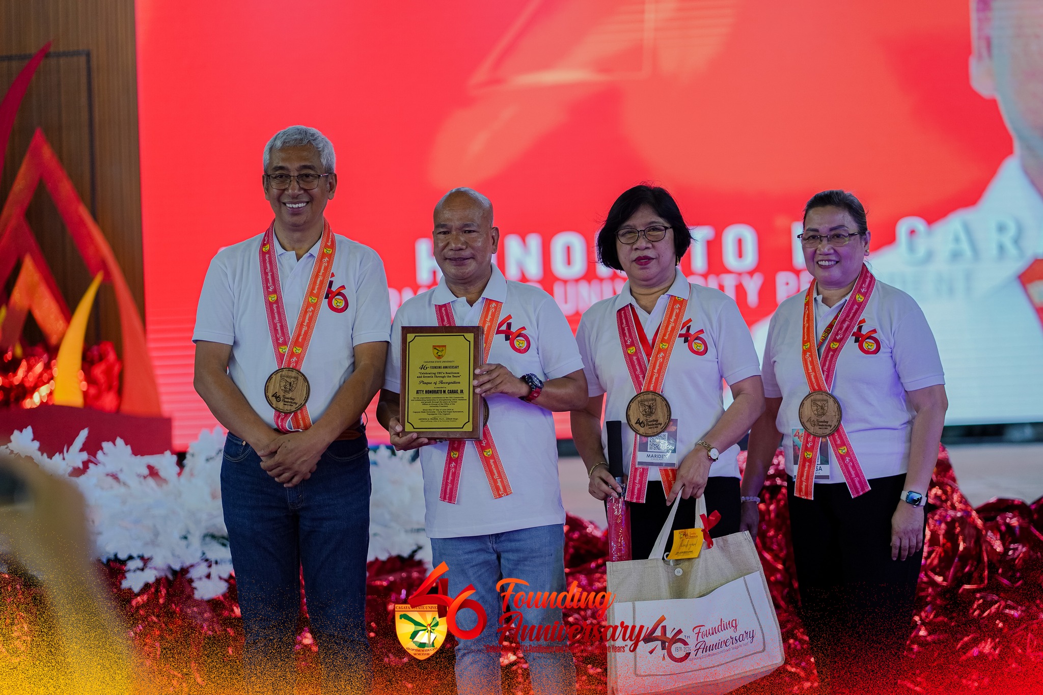 The opening program of the anniversary celebrations brought together former administrators, including esteemed former Presidents and Vice Presidents of the university, in a gathering that drew thousands of employees and students. A highlight of the program was the screening of “CSU in Retrospect,” a poignant video documentary that delved into the rich history of CSU through the notable contributions of past presidents, whose visionary leadership has been instrumental in shaping the institution into the distinct entity it is today. The former officials were honored with awards on stage amidst the nostalgic strains of the old “CSU March,” evoking a sense of nostalgia as they reunited with the university after many years. Distinguished personalities such as former Presidents Dr. Urdujah Alvarado, Dr. and Mrs. Armando Cortes, and Dr. Gerry Perez were in attendance, adding to the significance of the occasion.