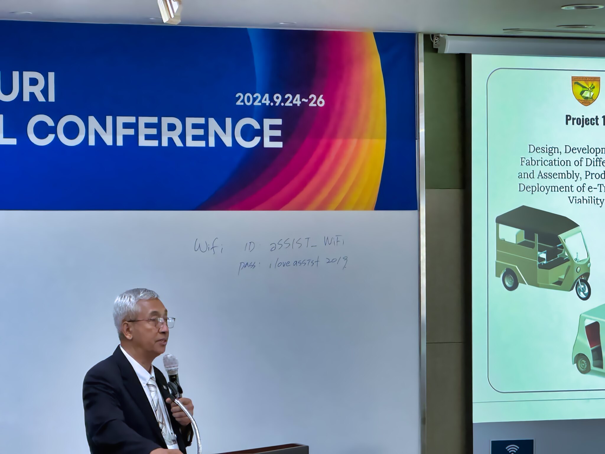 The Cagayan State University's Electromobility Research Project gained the international spotlight, receiving commendation for its innovativeness and praises from members of the World University Rankings for Innovation (WURI) Global Conference (WGC 2024) following the presentation of OIC-President Arthur G. Ibañez at aSSIST University, Seoul, South Korea, September 29, 2024. Dr. Ibañez presented the Electromobility Research Project under the Industrial Application Category, sparking international attention and recognition. The innovative project under the E-Mobility NICER Program, supported by the Department of Science and Technology (DOST) was highly commended by the discussant and participants coming from Higher Educational Institutions (HEIs) in different countries, highlighting the projects’ innovative features, including its sustainable, eco-friendly and durable material.