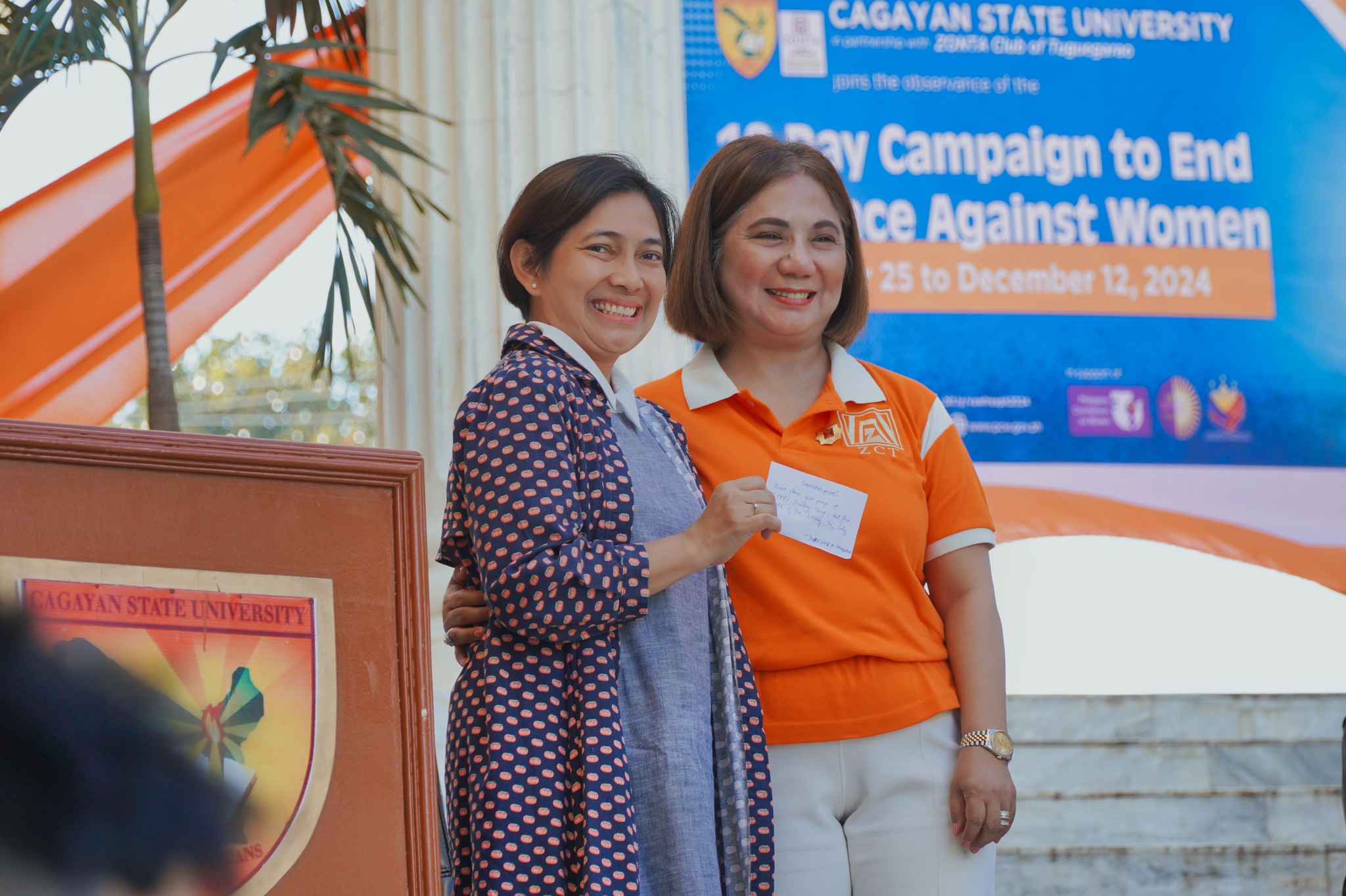 Cagayan State University (CSU), led by OIC President Dr. Arthur G. Ibañez, renewed its partnership with the ZONTA Club of Tuguegarao, represented by President Liza Mora-Arroyo, during the launch of the 18-day campaign to end Violence Against Women and their Children (VAWC), November 22, 2024.