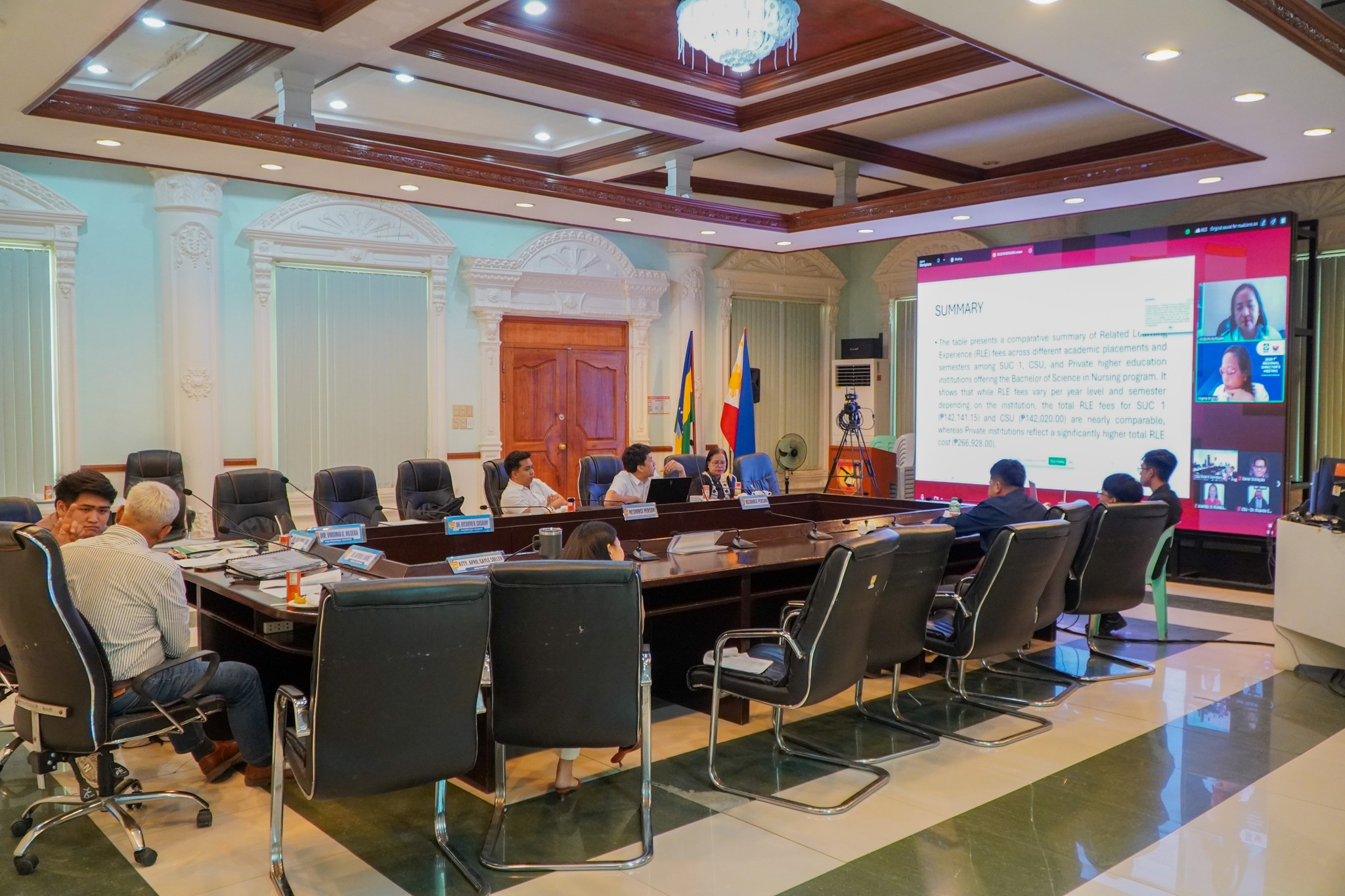 The meeting gathered key members of the Board, including DA Regional Executive Director Rose Mary G. Aquino, DOST R02 Regional Director Virginia Bilgera and Faculty Regent Ricardo Casauay via Zoom, and Student Regent Kyle Aron Tan, alongside other university and campus officials.