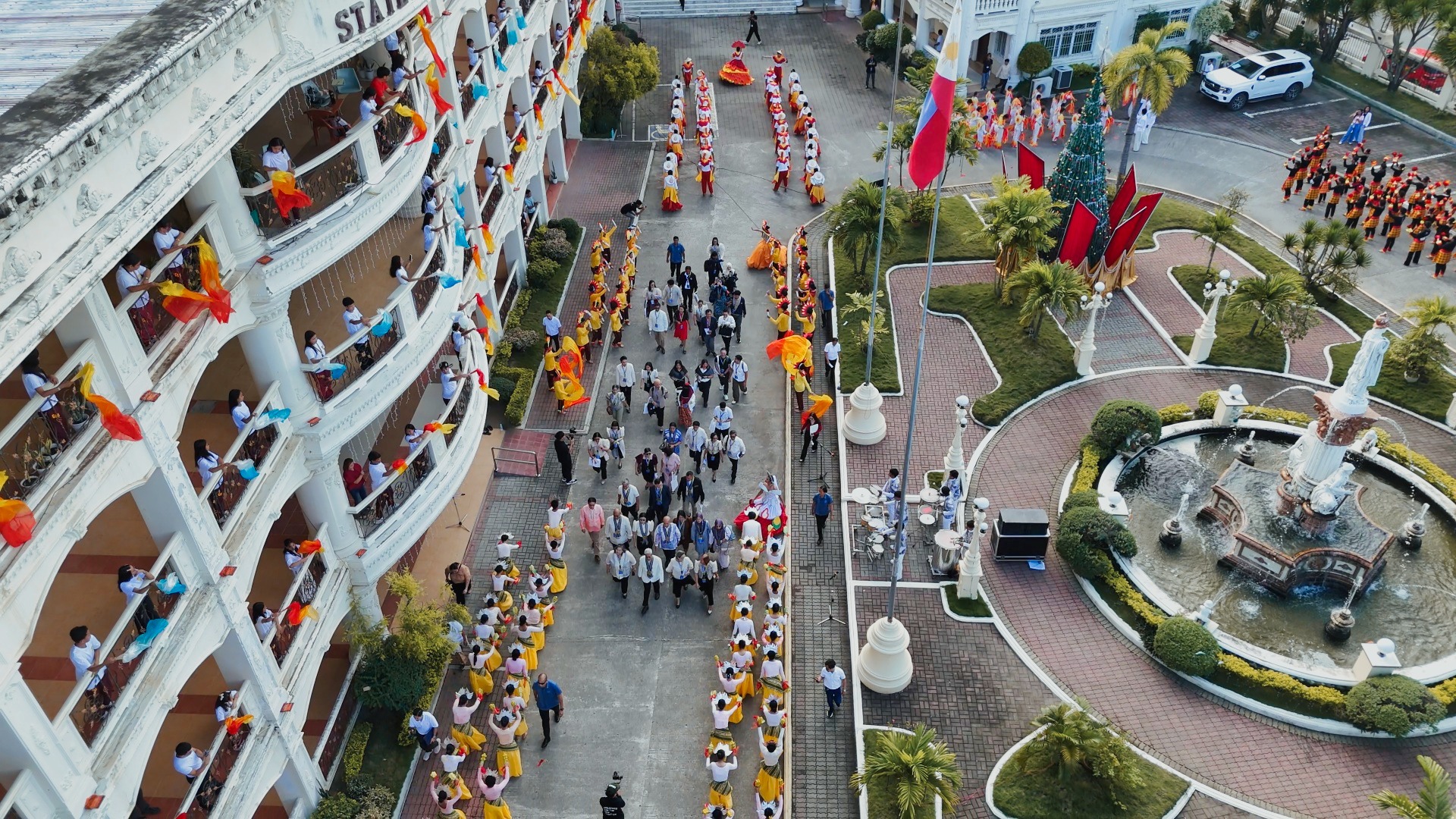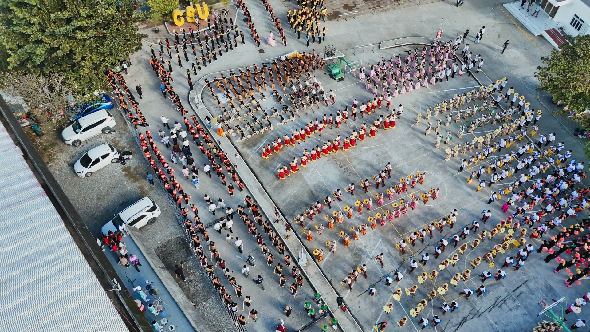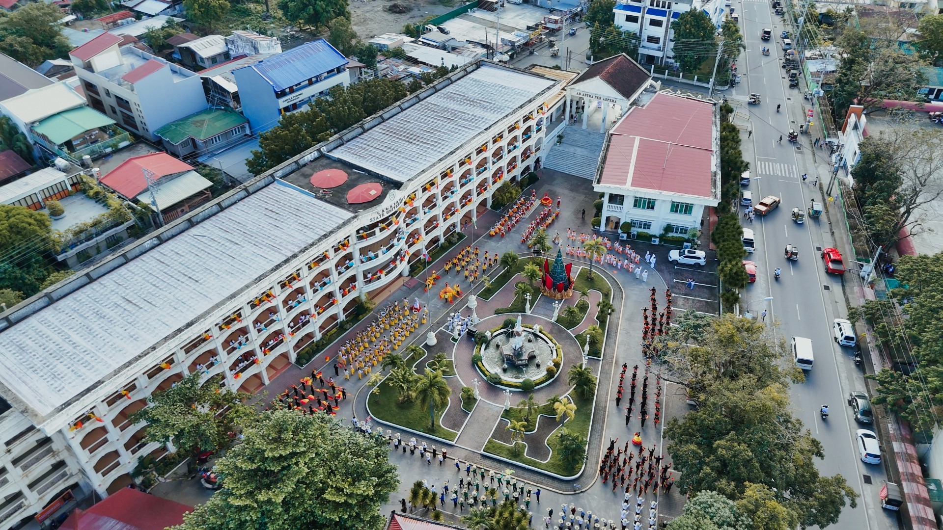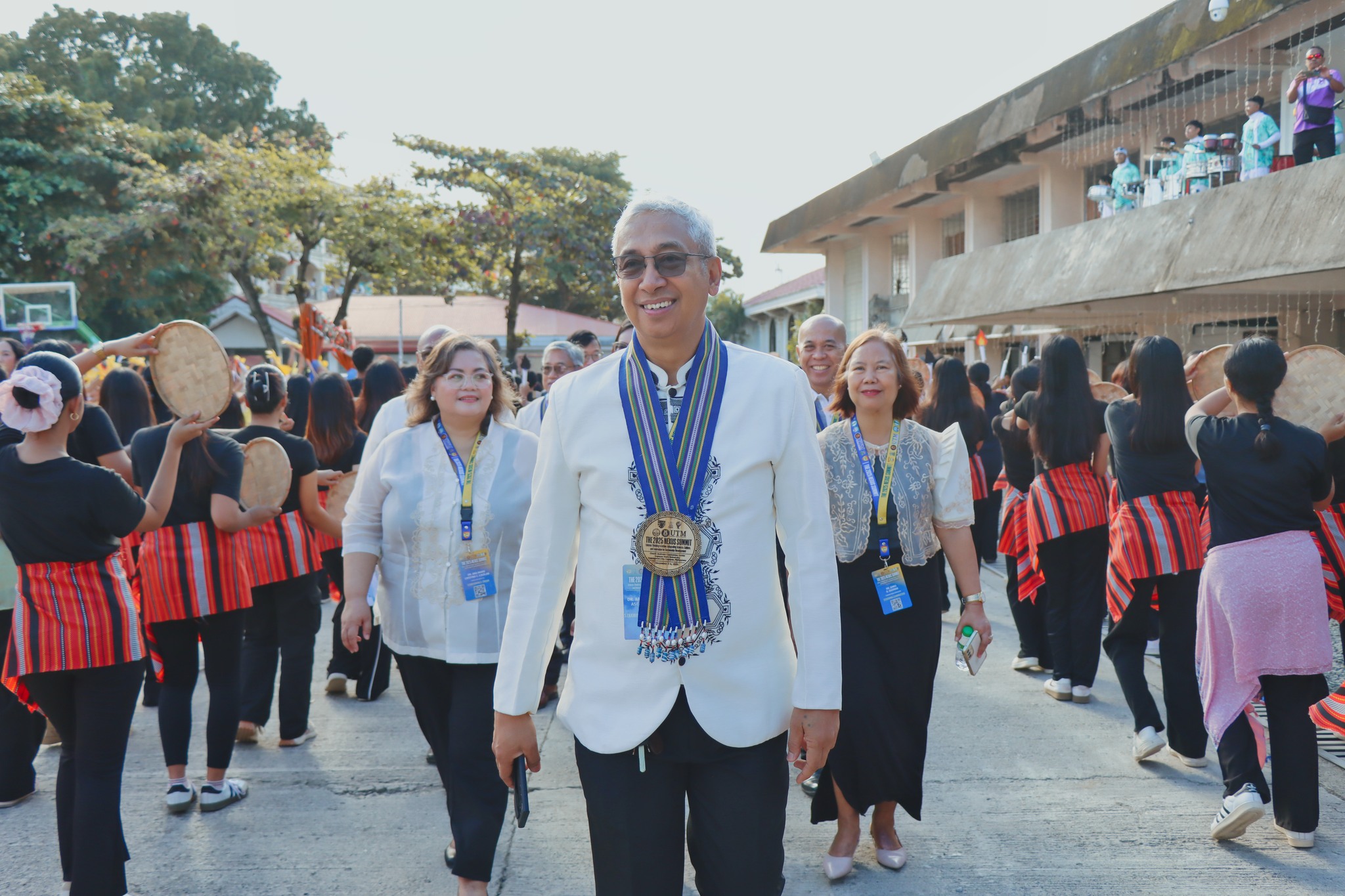 A colorful sea of CSUans, showcasing vibrant Philippine cultural dances, warmly welcomed international and local delegates of the NEXUS 2025 at Cagayan State University—Andrews Campus.