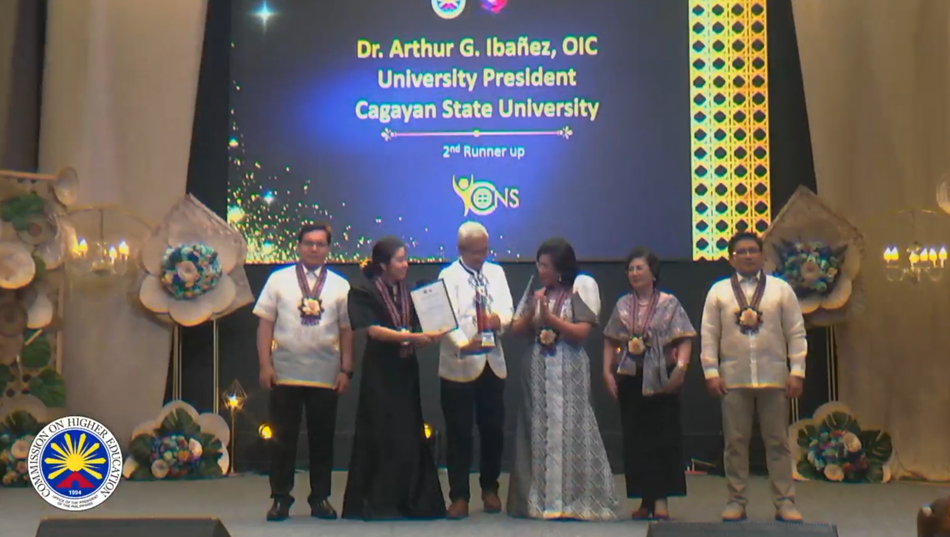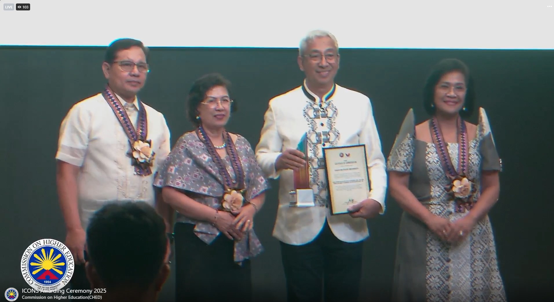 Assisting the chair in presenting the award were Commissioners Ricmar Aquino, Myrna Mallari and Michelle Ong. The ICONS Awards annually honor public and private HEIs that demonstrate outstanding contributions to the internationalization of Philippine higher education, fostering global competitiveness and nation-building.